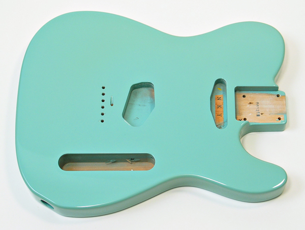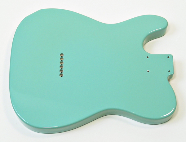 Tele® style three piece alder body. Made in Japan. Vintage specs. and routed for traditional Tele® style single coil pickup configuration. Drilled for metric string ferrules. Comes with the appropriate set of chrome string ferrules at no extra charge. Factory finished in top quality Surf Green poly. Typical weight is around 5 lbs. $450 |