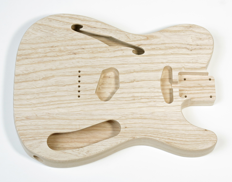 Tele® Thinline three piece Swamp Ash body. Made in Japan. Vintage specifications and routed for traditional Tele® style single coil pickups. Fine sanded and ready for spraying. Drilled for metric string ferrules and all bodies are supplied with the appropriate set of chrome string ferrules at no extra charge $375 |