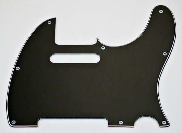 Tele® style pickguard. Black, three ply (black/white/black), gloss finish, 1960's style 8 screw mount.