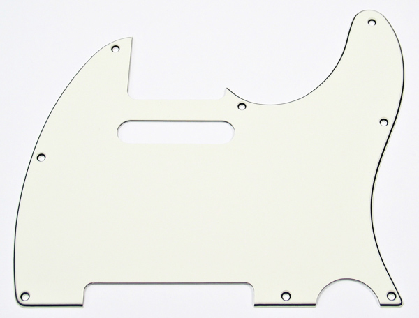 Tele® style pickguard. Parchment, three ply (parchment/black/parchment), gloss finish, 1960's style 8 screw mount.