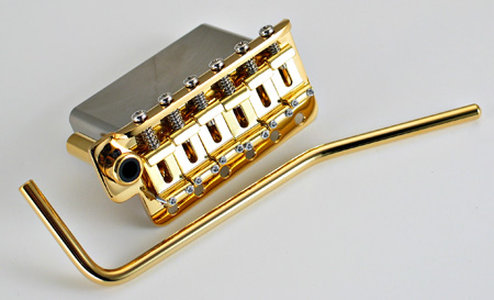 Gotoh 510TS-SF2 Tremolo. Gotoh's top of the range all steel tremolo and best choice traditional 6 screw mount tremolo with vintage style pressed steel saddles in our humble ... Top quality machined steel construction with a substantial steel block for better tone and sustain. This bridge has the correct 10.8mm string pitch exactly replicating the vintage specs. and 56 mm. mount screw spread. This trem arm is superior in both design and use than the traditional one. Comes complete with the tremolo arm, all screws, allen keys, claw and springs. Gold finish $200